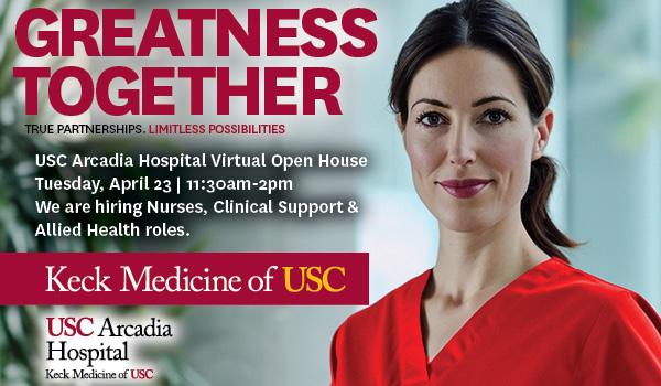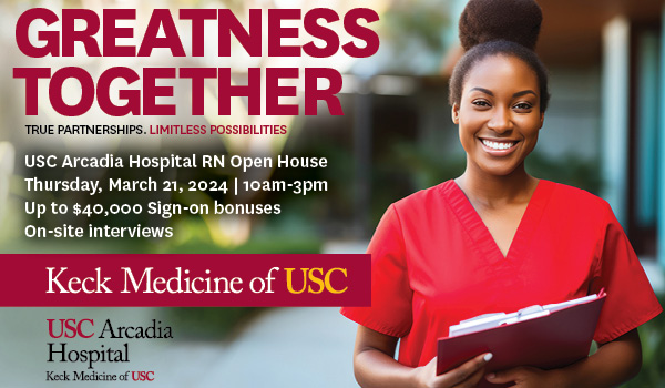 USC Arcadia Hospital RN + Allied Health Virtual Open House Promo ImageMy SpecialtyLabor & Delivery, Gayane Cherechyan, Adventist Health GlendaleCare and advocacy for new moms and babies...years old, my mom was in the hospital for five months. She wanted one of her kids to be in the medical field so there would always be someone she...FeatureBeyond BedsideThree hospital nursing roles that don’t involve direct patient care...A DUAL ROLE In some hospitals, sepsis coordinators may also coordinate other conditions, such as stroke, where swift intervention is vitally important to patient outcomes. Redlands Community Hospital’s Betsy Mendez,...USC Arcadia Hospital Experienced RN Open House Promo ImageUSC Arcadia Hospital Experienced RN Open House Promo ImagePosts paginationPrevious1…333435…56Next