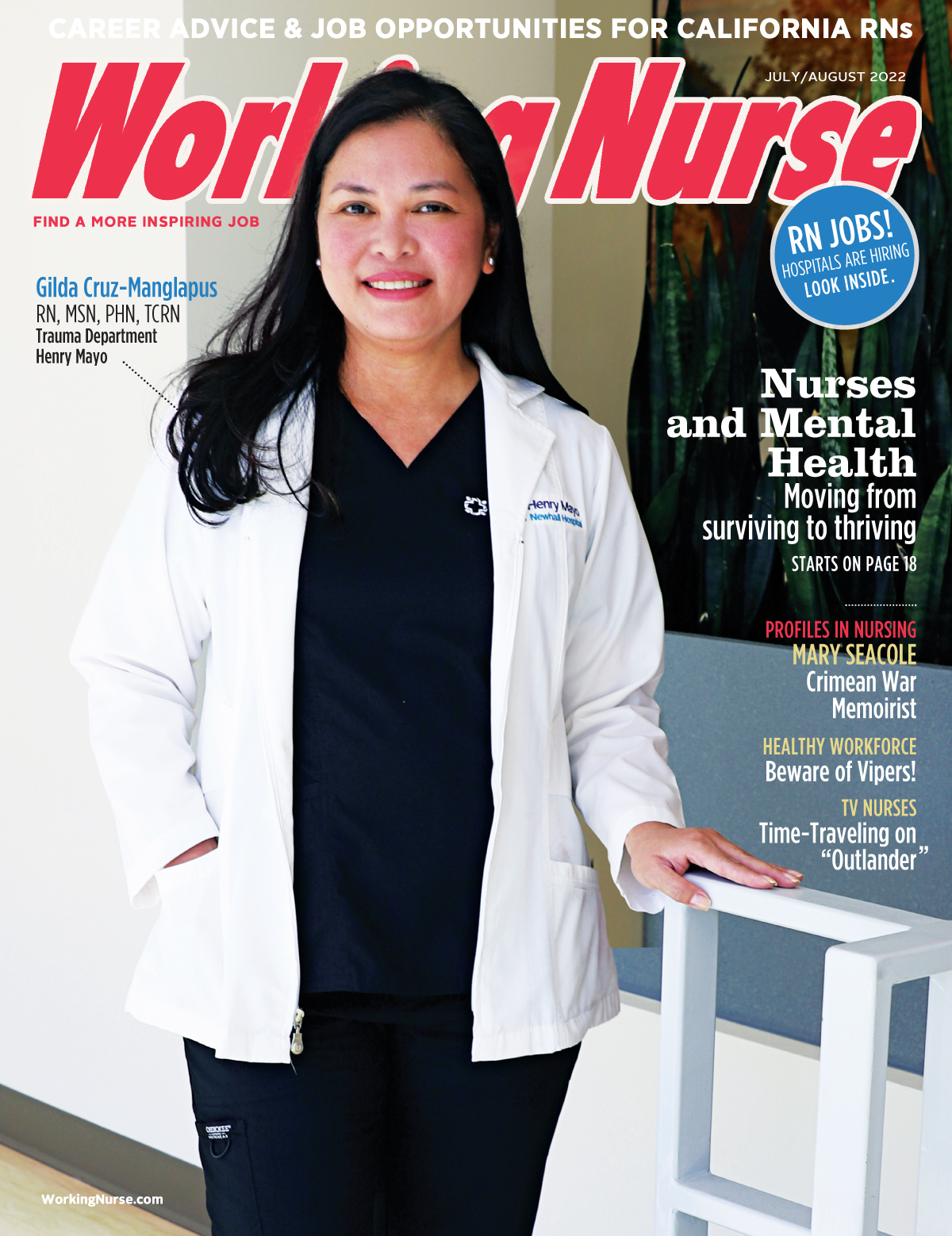 Results for: "Working Nurse" Clear search743 articlesNursing & Healthcare News“Nurses Don’t Like to Work Short-Staffed”AACN study highlights the need for healthy work environments...in order to attract and retain nurses. Lower Job Satisfaction Back in October 2021, the AACN conducted the fifth in its series of large-scale nurse work environment studies, assessing nurses’...Working Nurse September 2022Working Nurse July 2022FeatureObstacles to Mental Health CareDepression, anxiety and burnout among nurses skyrocketed during the pandemic. Getting help is not always so easy. ...up to 40 percent of healthcare professionals will experience post-traumatic stress following the pandemic. Severe burnout among nurses has more than doubled. More than ever, nurses need access to comprehensive,...My SpecialtyTrauma Nursing, Gilda Cruz-Manglapus, Henry Mayo Newhall HospitalResponding to severe injury and community crisis...all trauma nurses have it? The TCRN (trauma certified registered nurse) certification is fairly new. Not all trauma nurses have the certification, and we do not require our nurses to...